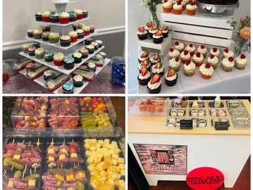 Interactive, customizable and mobile, the OMGG Oh My Gluten Free Goodness Charcuterie Cart is a show stopping addition to your showers, birthdays, weddings and so much more. Offering an onsite experience, we provide a customized Gluten free menu for each of your guests. Services include food service and restocking of cart for 2 hrs.